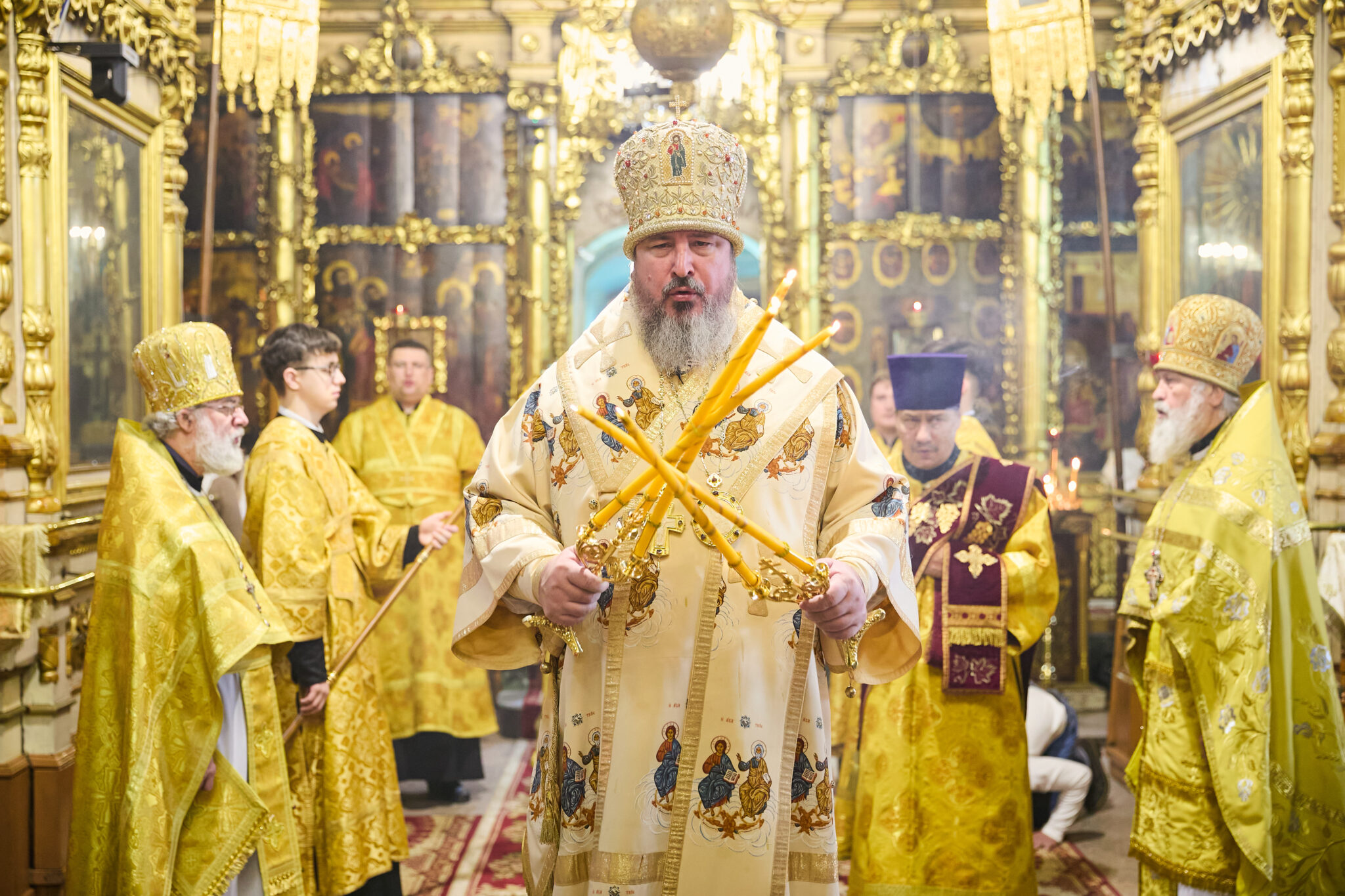На сугубой ектении были произнесены особые прошения «о единстве Святого Православия» и «во время распространения вредоносного поветрия», по сугубой ектении Владыка совершил молитвы о мире и преодолении междоусобной брани на Украине и во время распространения вредоносного поветрия.