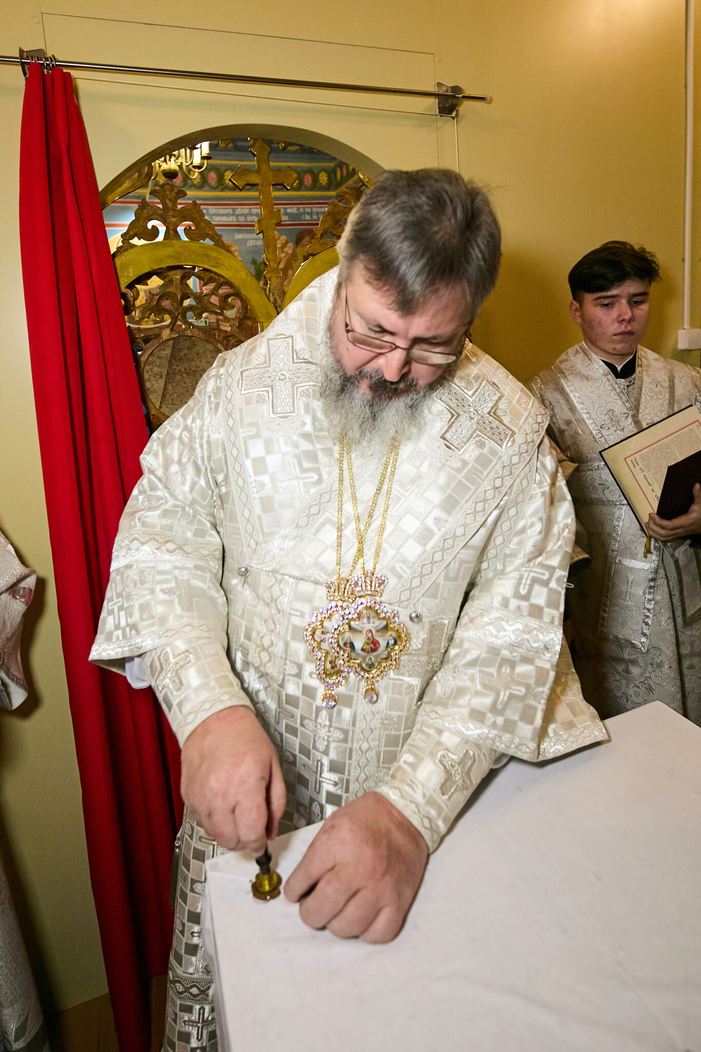 Его Высокопреосвященству сослужили ключарь кафедрального собора протоиерей Вениамин Пегасов , игумен Виталий (Гришин) и иерей Александр Михайлов. Диаконский чин возглавил диакон Евгений Поляков.