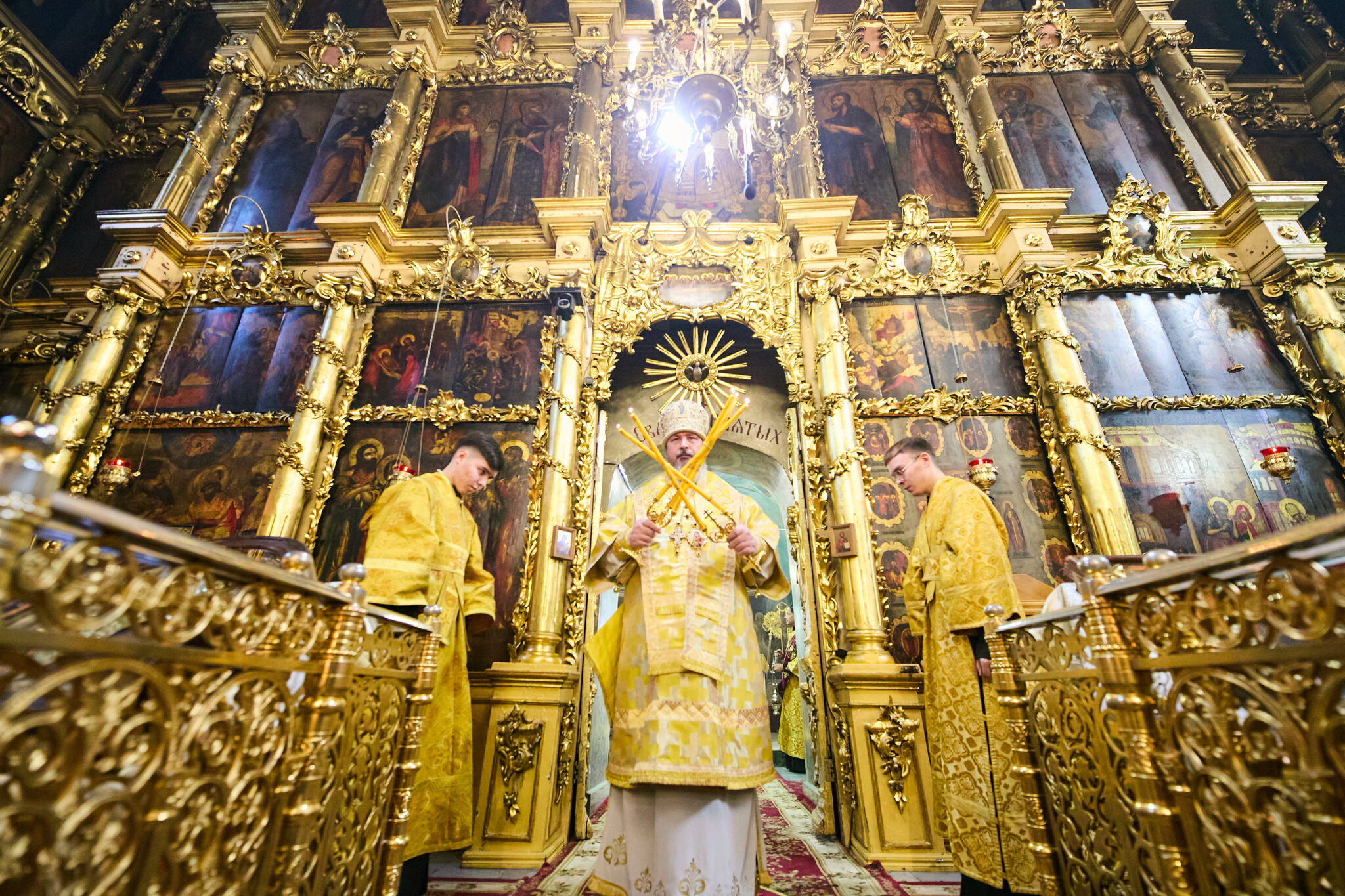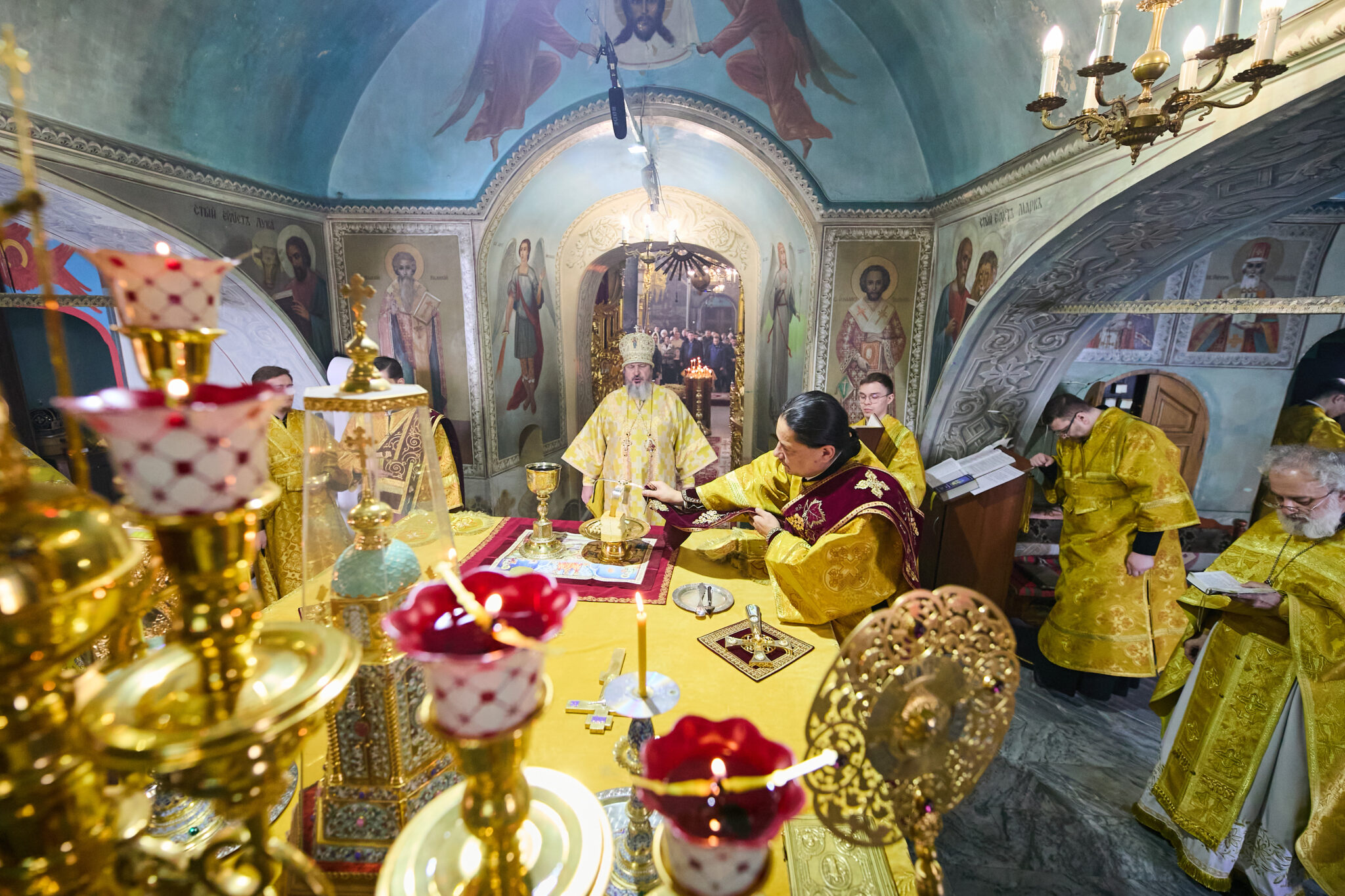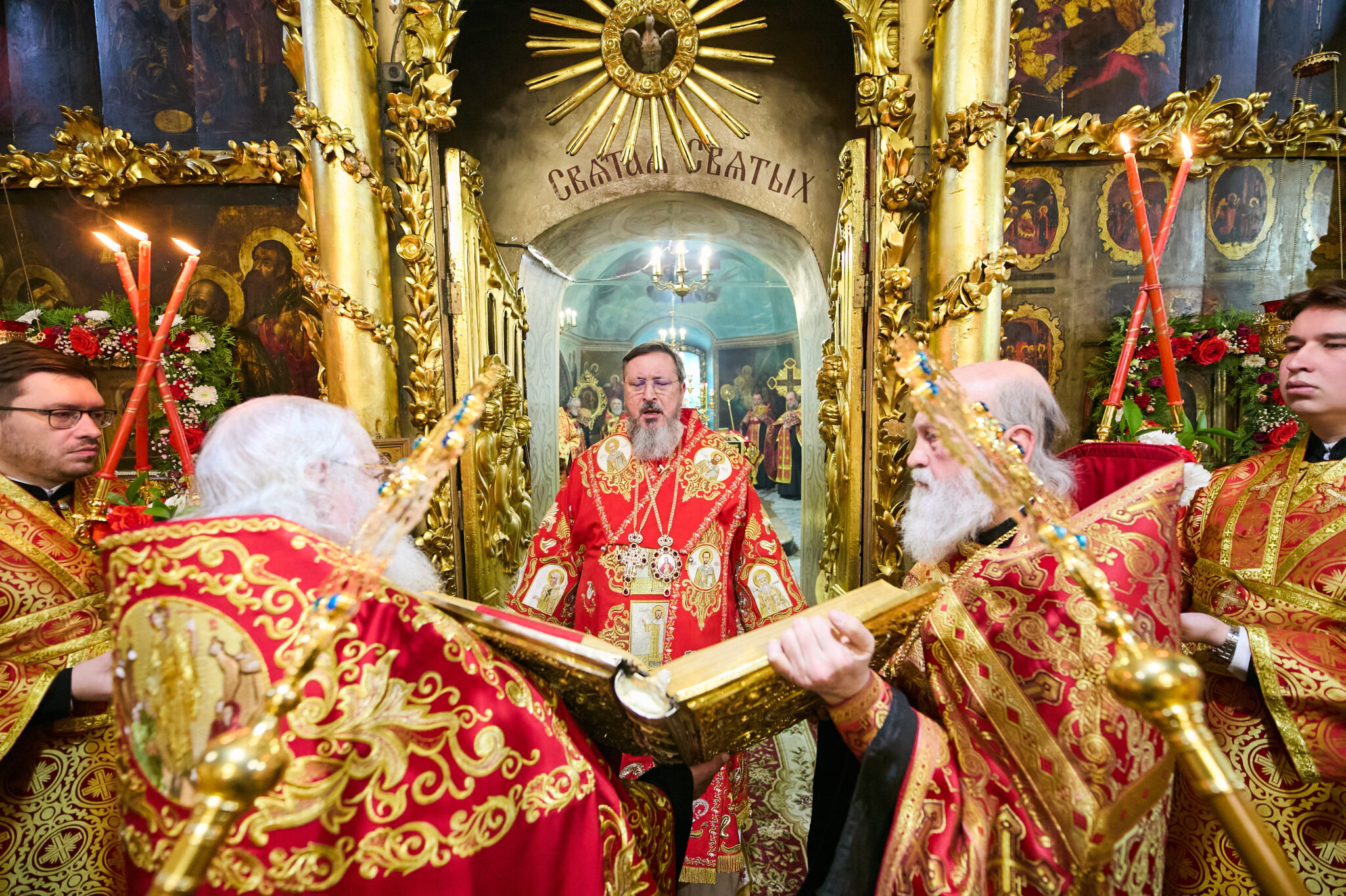 На сугубой ектении были произнесены особые прошения «о единстве Святого Православия» и «во время распространения вредоносного поветрия», по сугубой ектении Владыка совершил молитвы о мире и преодолении междоусобной брани на Украине и во время распространения вредоносного поветрия.