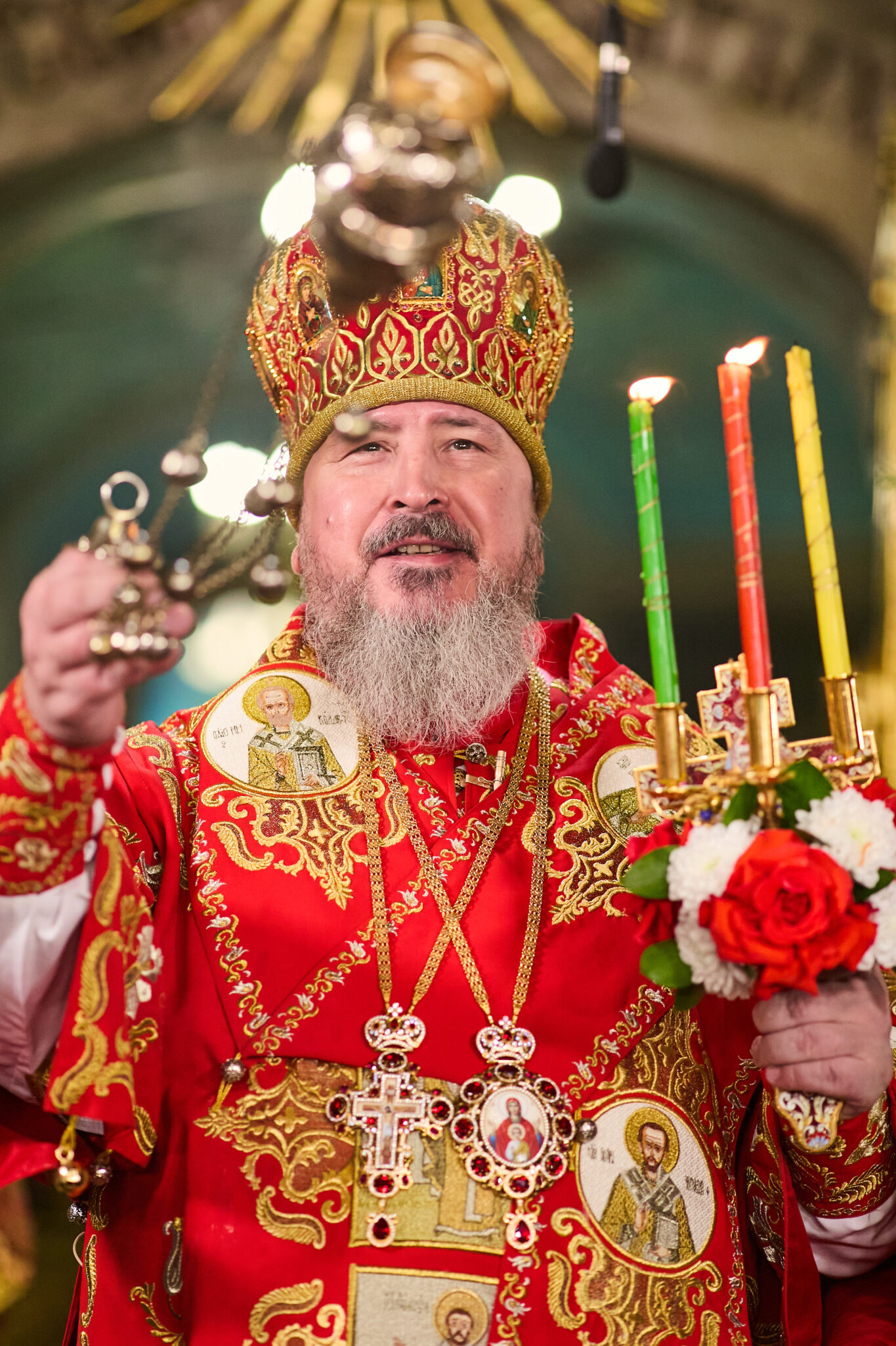 11 мая 2025 года в Неделю 4-ю по Пасхе, о расслабленном, в день памяти перенесения мощей мч. Авраамия Болгарского (1230), глава Чувашской митрополии, митрополит Чебоксарский и Чувашский Савватий совершил в Введенском кафедральном соборе г.Чебоксары.
