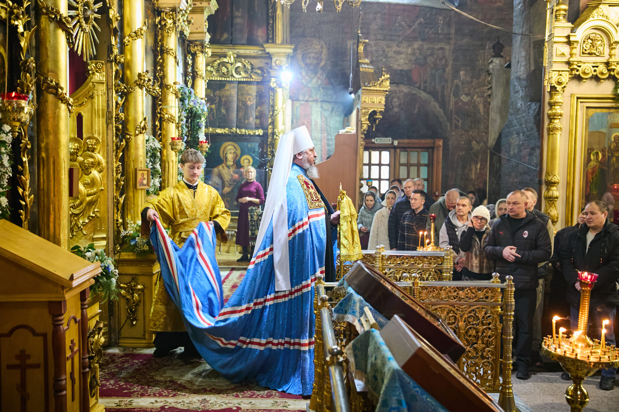 Его Высокопреосвященству сослужили ключарь собора протоиерей Вениамин Пегасов и иерей Александр Михайлов. Диаконский чин возглавил диакон Евгений Поляков.