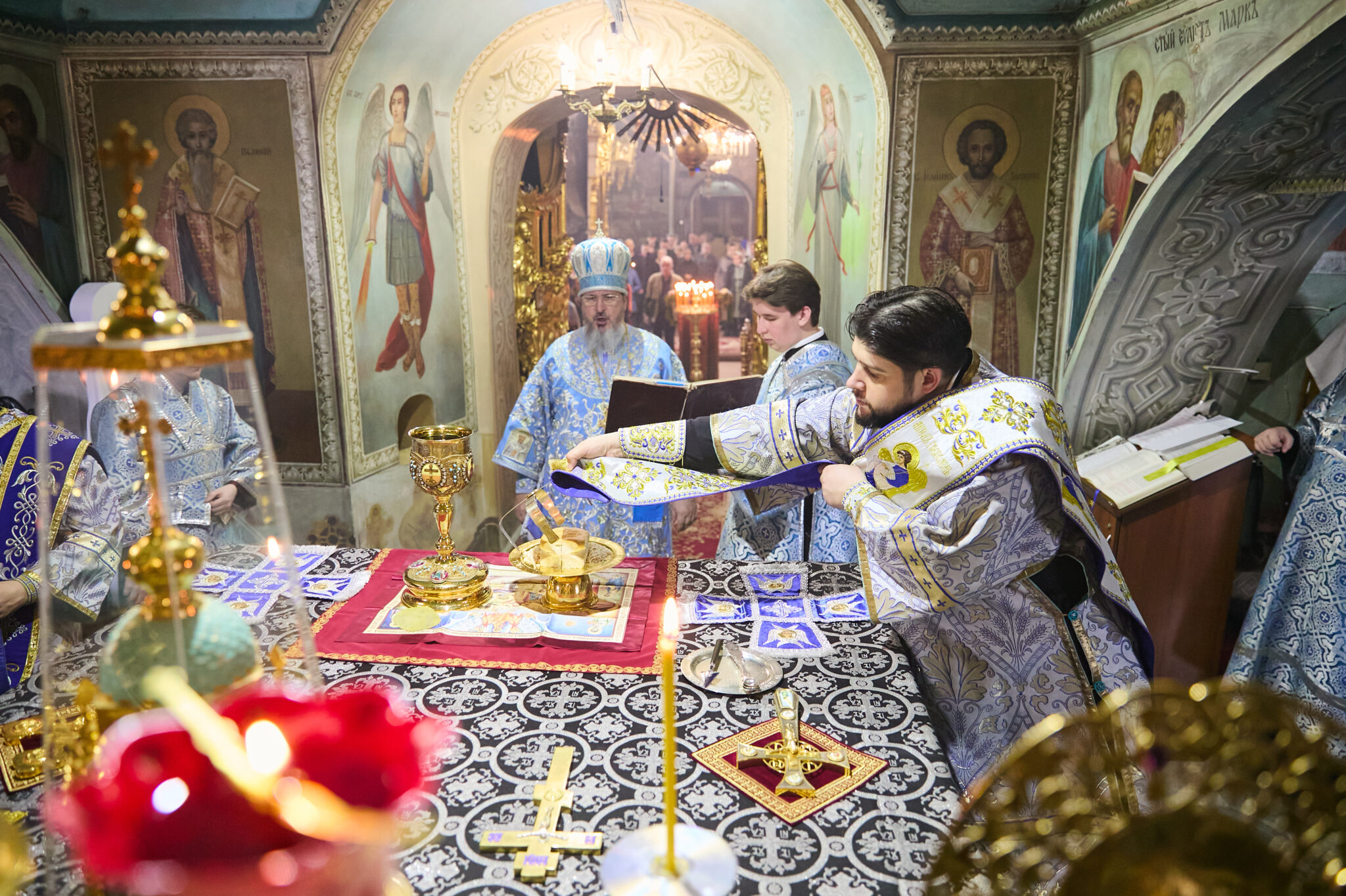 Его Высокопреосвященству сослужили ключарь кафедрального собора протоиерей Вениамин Пегасов , игумен Виталий (Гришин) и иерей Александр Михайлов. Диаконский чин возглавил диакон Евгений Поляков.