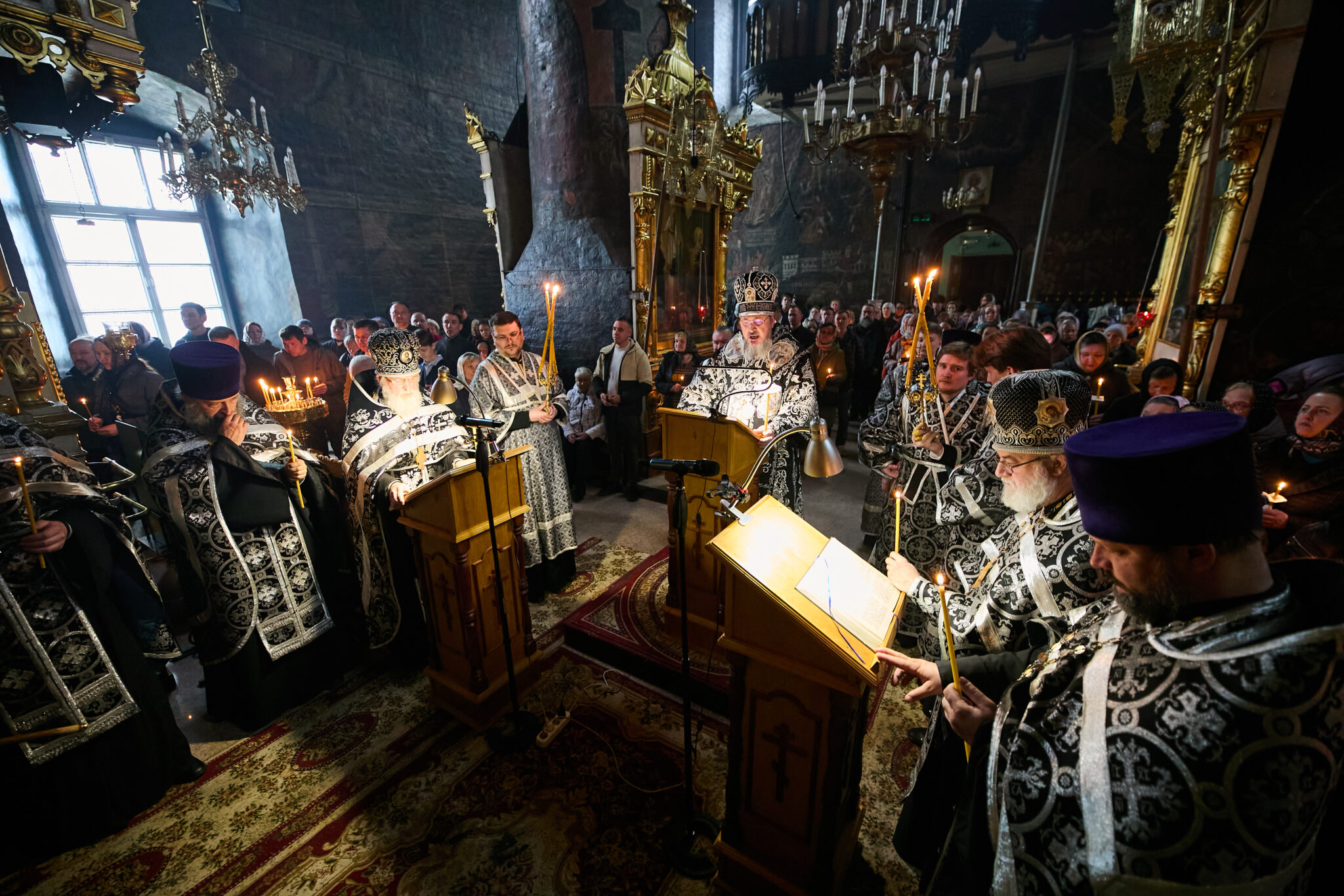 23 февраля 2026 года вечером, в понедельник первой седмицы Великого поста, глава Чувашской митрополии, митрополит Чебоксарский и Чувашский Савватий, совершил Великое повечерие с чтением Великого покаянного канона преподобного Андрея Критского в Введенском кафедральном соборе г.Чебоксары.