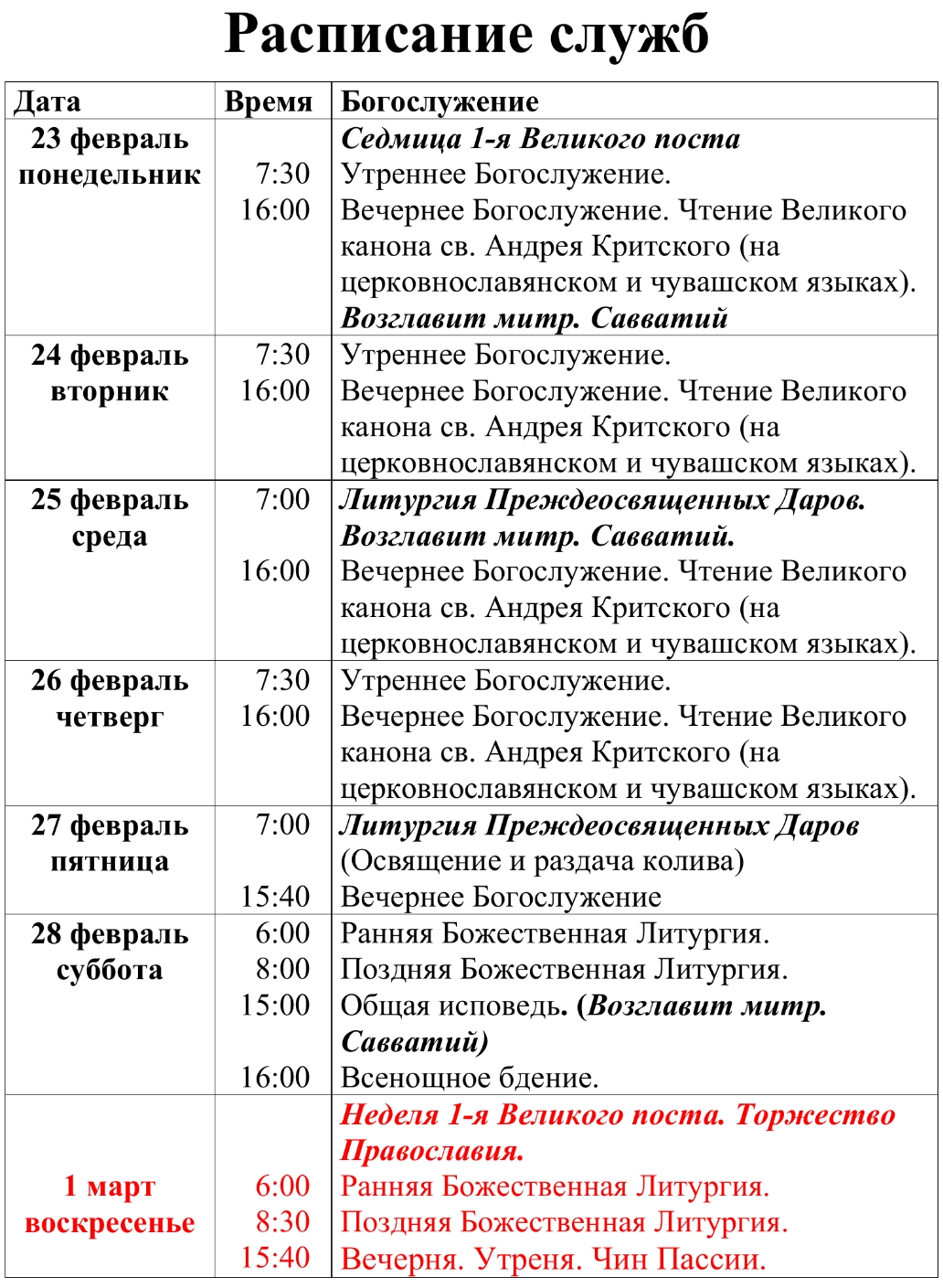 3 марта 2025 года вечером, в понедельник первой седмицы Великого поста, глава Чувашской митрополии, митрополит Чебоксарский и Чувашский Савватий, совершил Великое повечерие с чтением Великого покаянного канона преподобного Андрея Критского в Введенском кафедральном соборе г.Чебоксары.